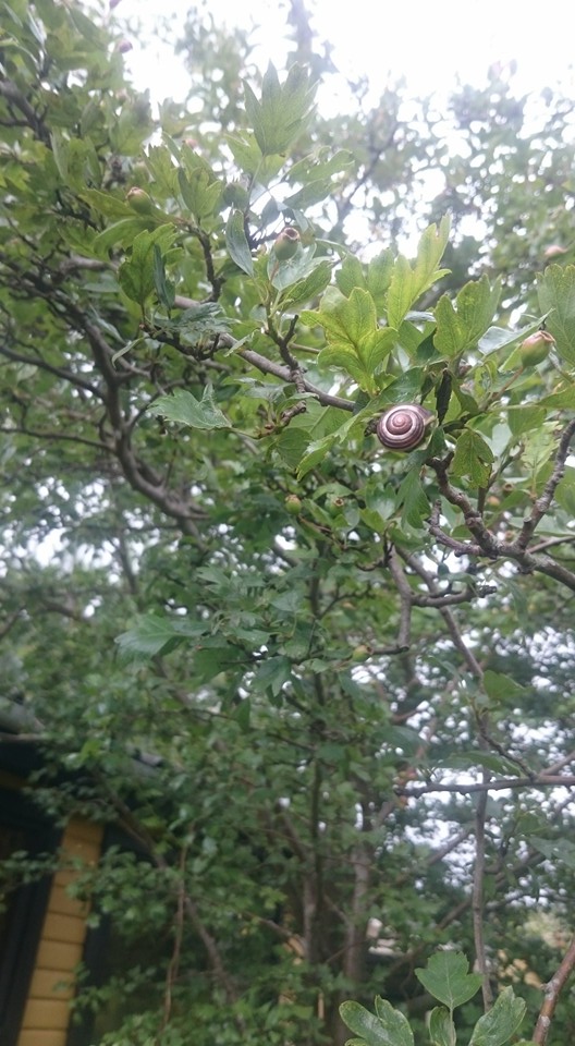 i tyndere opvendte grene.